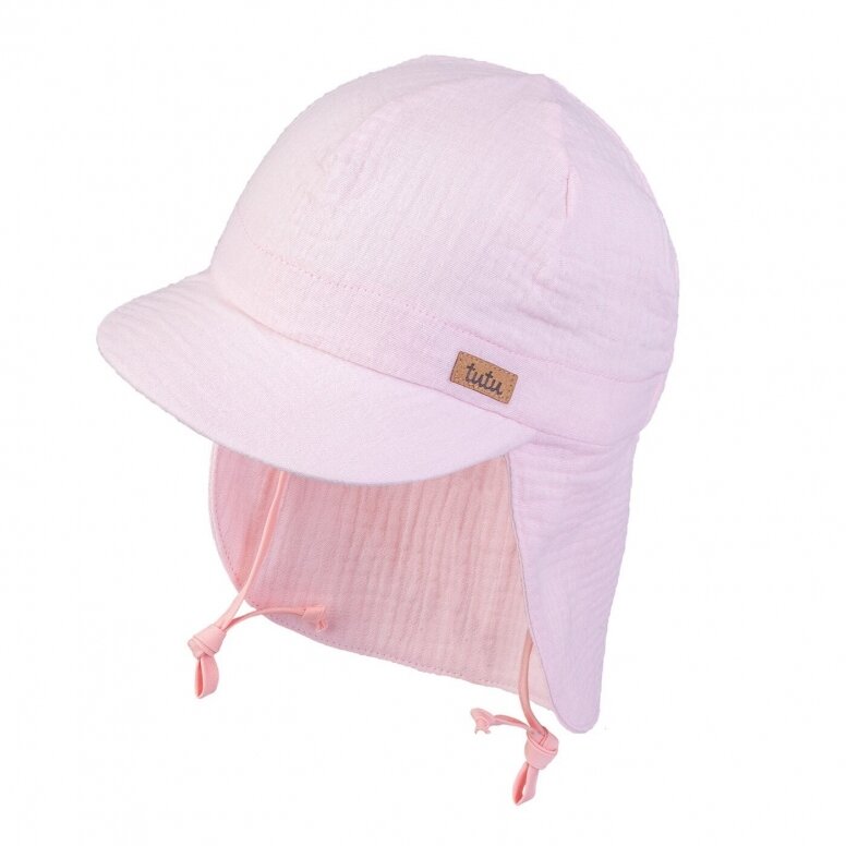 Organinės medvilnės kepurė su raišteliais, snapeliu ir kaklo apsauga