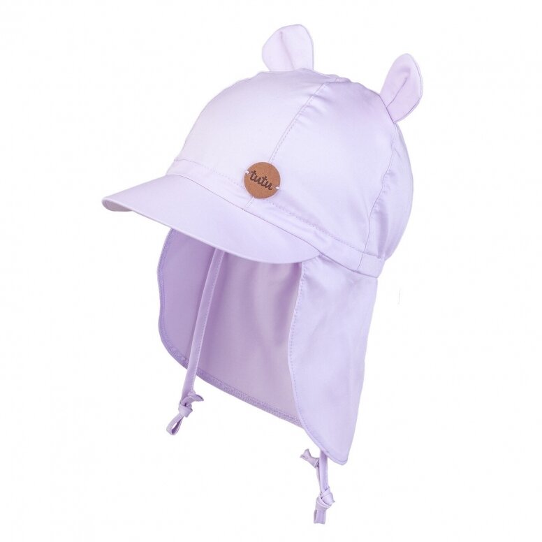 Medvilninė kepurė su raišteliais, su kaklo apsauga, snapeliu ir ausytėmis.