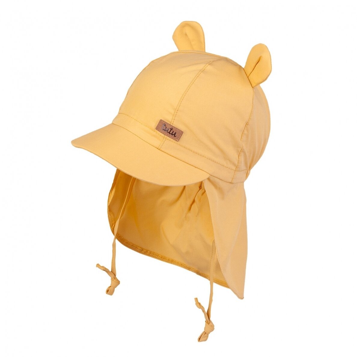 Medvilninė kepurė su raišteliais, su kaklo apsauga, snapeliu ir ausytėmis