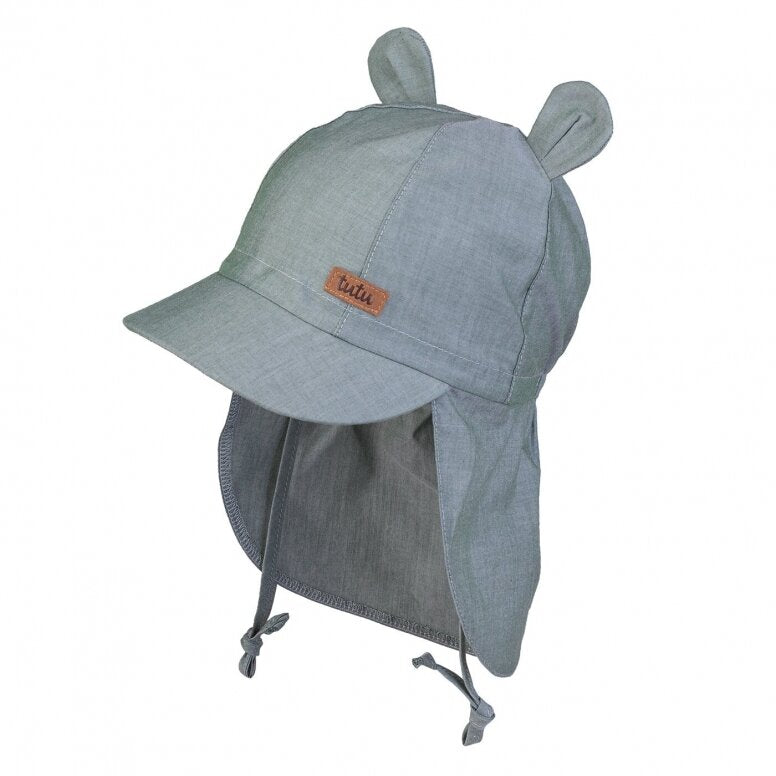Medvilninė kepurė su raišteliais, su kaklo apsauga, snapeliu ir ausytėmis